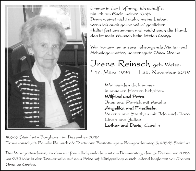 Irene Reinsch geb. Weiser