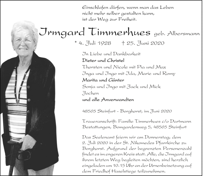 Irmgard Timmerhuesgestorben am 25. Juni 2020