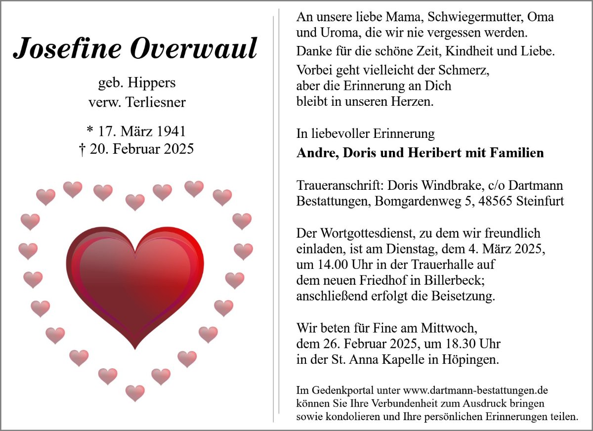 Josefine Overwaulgestorben am 20. Februar 2025