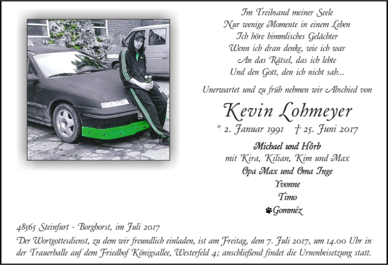Leider kommen diese vielen liebe Worte deiner Familie und Freunde nicht mehr an...
