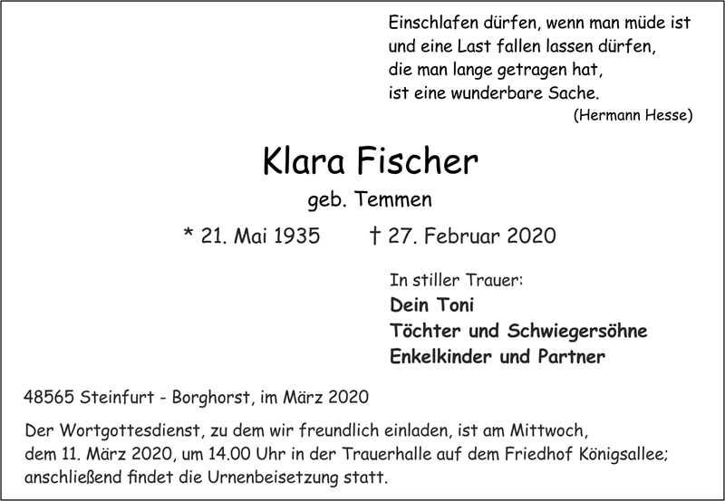Klara Fischer geb. Temmen