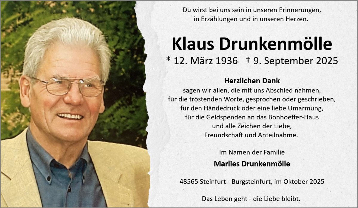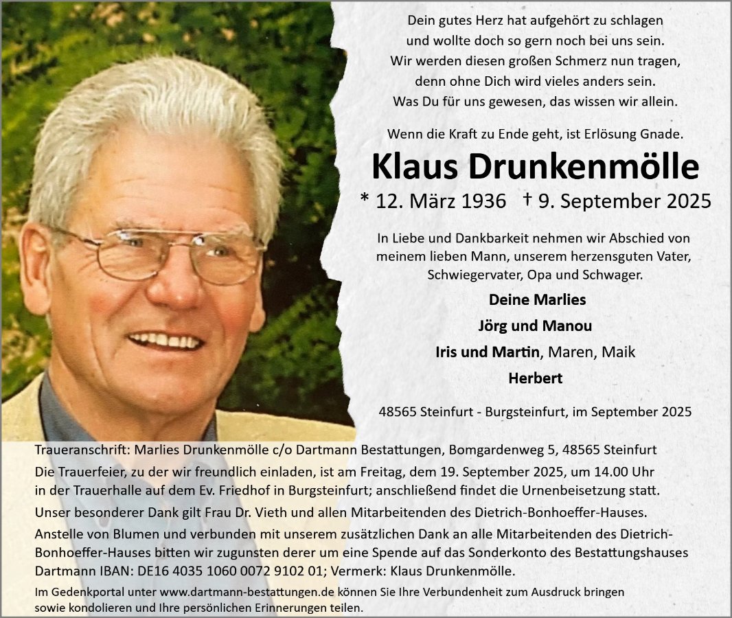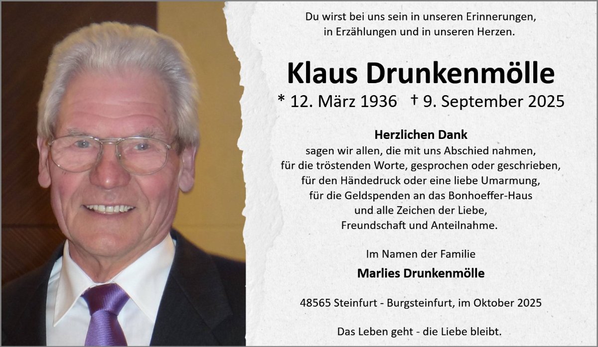 Klaus Drunkenmöllegestorben am 9. September 2025