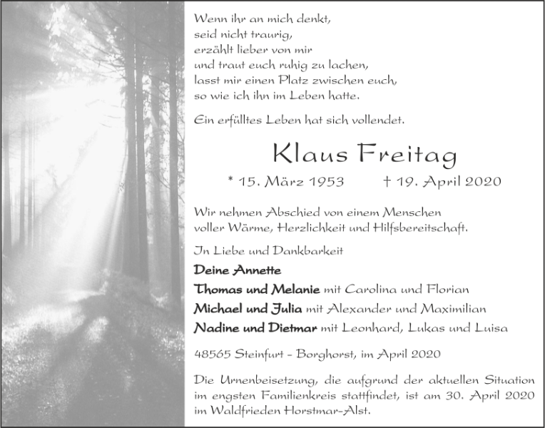 Lesen Sie hier die Anzeigen und Trauerpost!