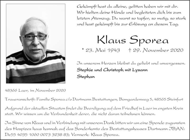 Klaus Sporeagestorben am 29. November 2020