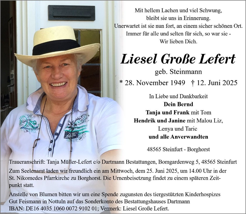Liesel Große Lefertgestorben am 12. Juni 2025