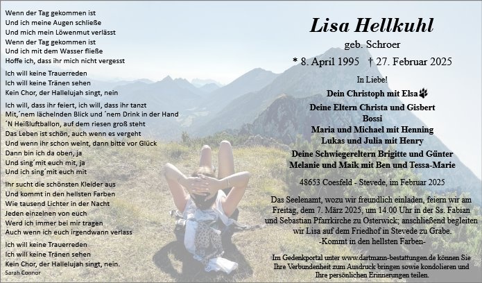 Wir denken an euch, in dieser schweren Zeit und für immer.