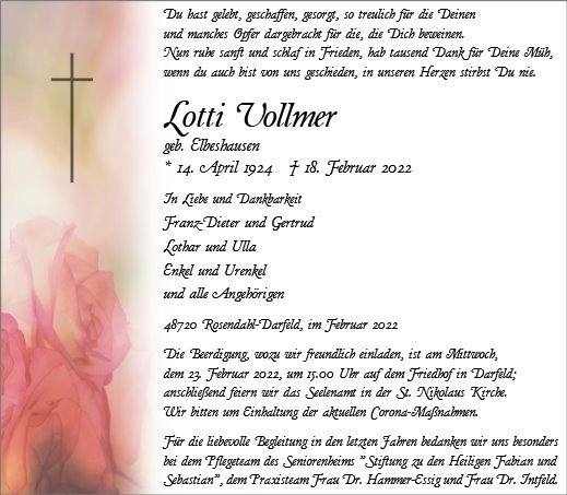 Lotti Vollmer geb. Elbeshausen