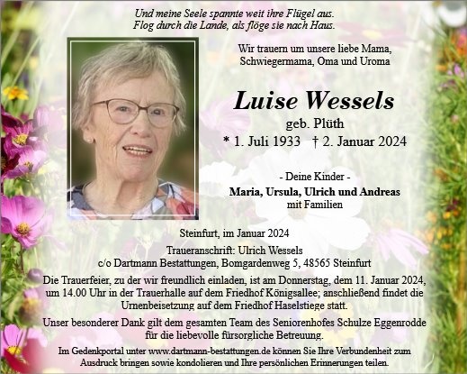 gestorben am 2. Januar 2024 in Schöppingen - Eggerode