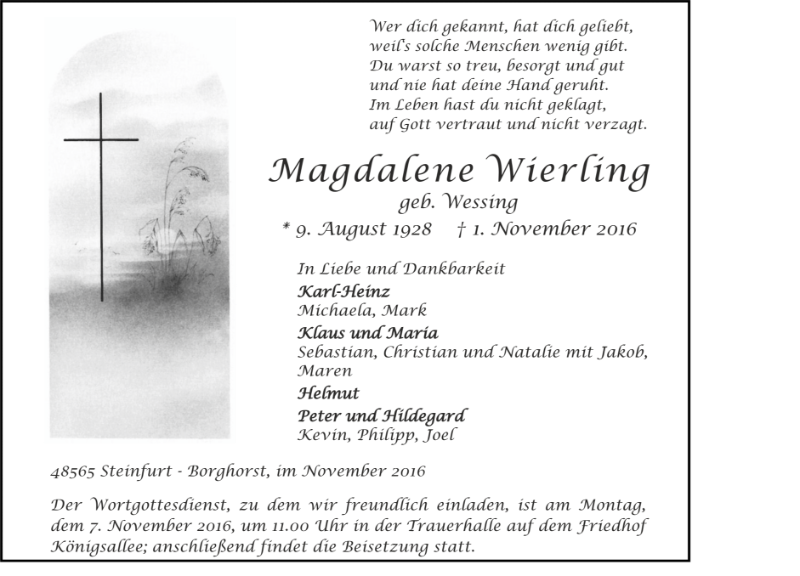 Magdalene Wierling geb. Wessing