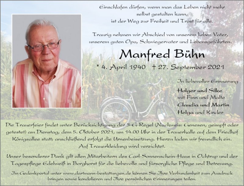 Liebe Familie, liebe Partnerin von Manfred. Ihnen sende ich mein herzliches Beileid.