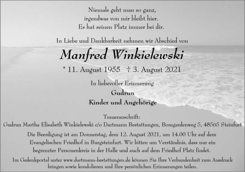 Manfred Winkielewskigestorben am 3. August 2021