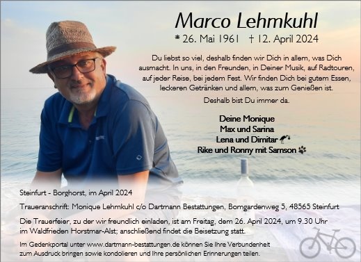 Bestürzt habe ich heute davon erfahren, dass Du den Kampf gegen diesen unerbittlichen Gegner verloren hast. Dabei machtest Du bei unserem zufälligen Gespräch vor wenigen Monaten noch einen so zuversichtlichen Eindruck.