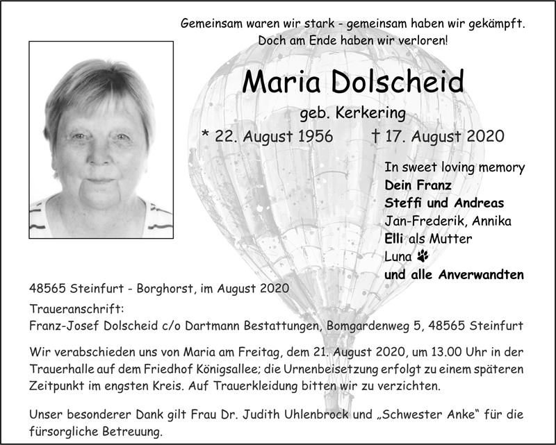 erst heute haben wir vom Tod von Maria erfahren.