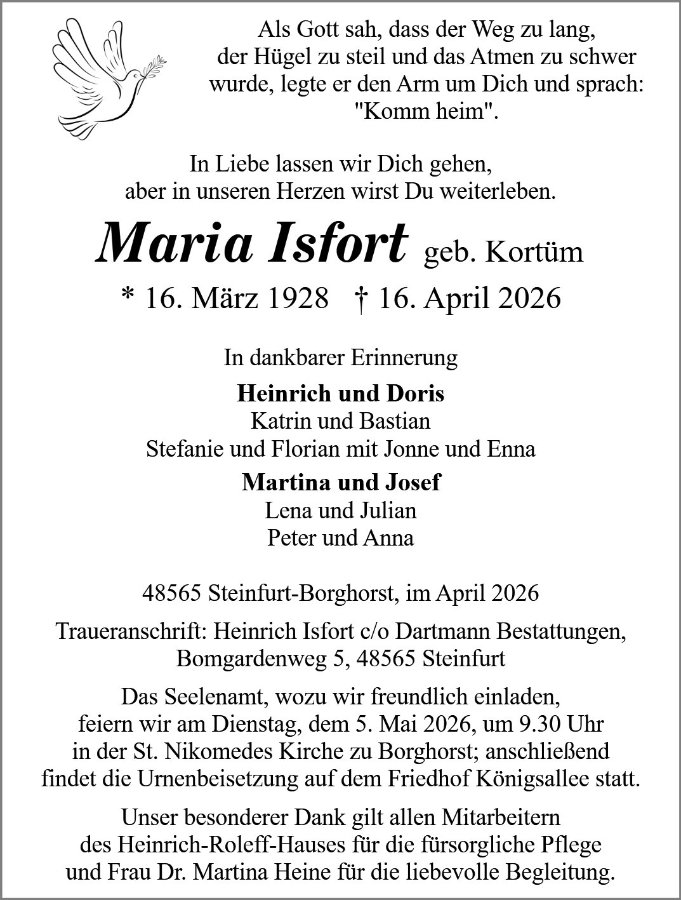 geboren am 16. März 1928 in Schöppingen gestorben am 16. April 2026 in Steinfurt