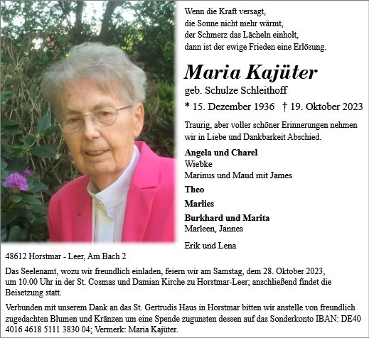 Maria Kajüter geb. Schleithoff