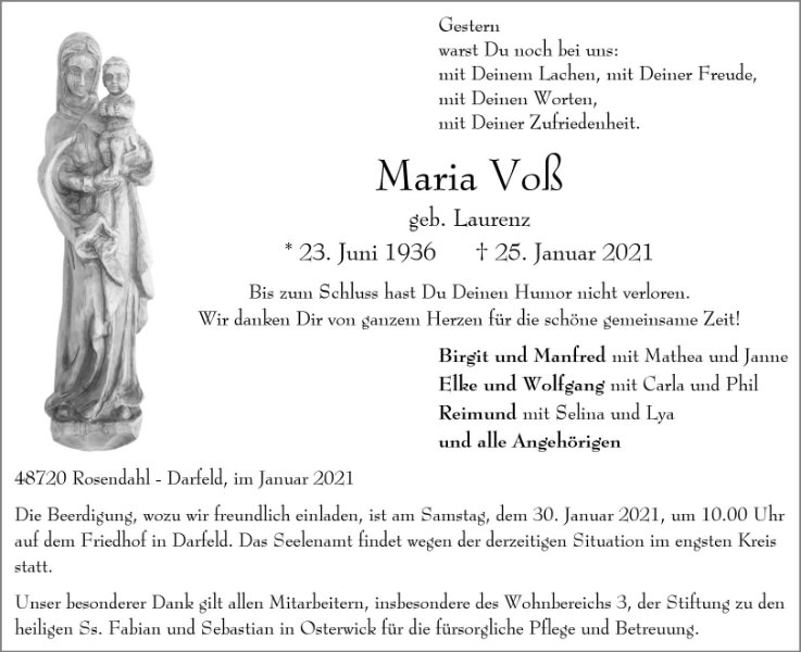 Maria Voßgestorben am 25. Januar 2021