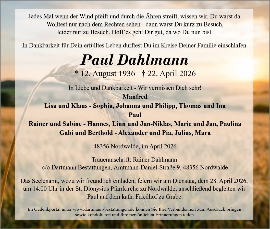 geboren am 12. August 1936 in Saerbeck gestorben am 22. April 2026 in Nordwalde