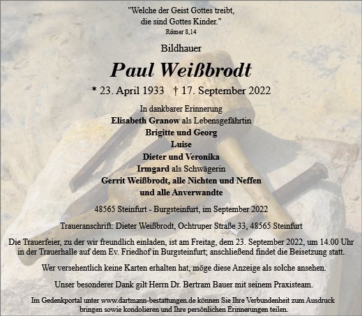 wir wünschen Ihnen von Herzen viel Kraft, dass Sie Menschen um sich haben, die Ihnen in dieser schweren Zeit beistehen und Halt geben. Zusätzlich können Sie auf dieser Gedenkseite Erinnerungen teilen und so das Andenken gemeinsam wachhalten.