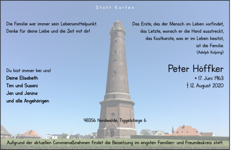 wir wünschen Ihnen von Herzen viel Kraft, dass Sie Menschen um sich haben, die Ihnen in dieser schweren Zeit beistehen und Halt geben. Zusätzlich können Sie auf dieser Gedenkseite Erinnerungen teilen und so das Andenken gemeinsam wachhalten.