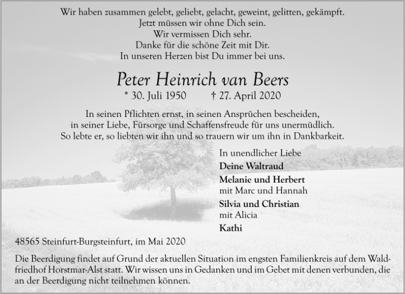 Peter van Beersgestorben am 27. April 2020