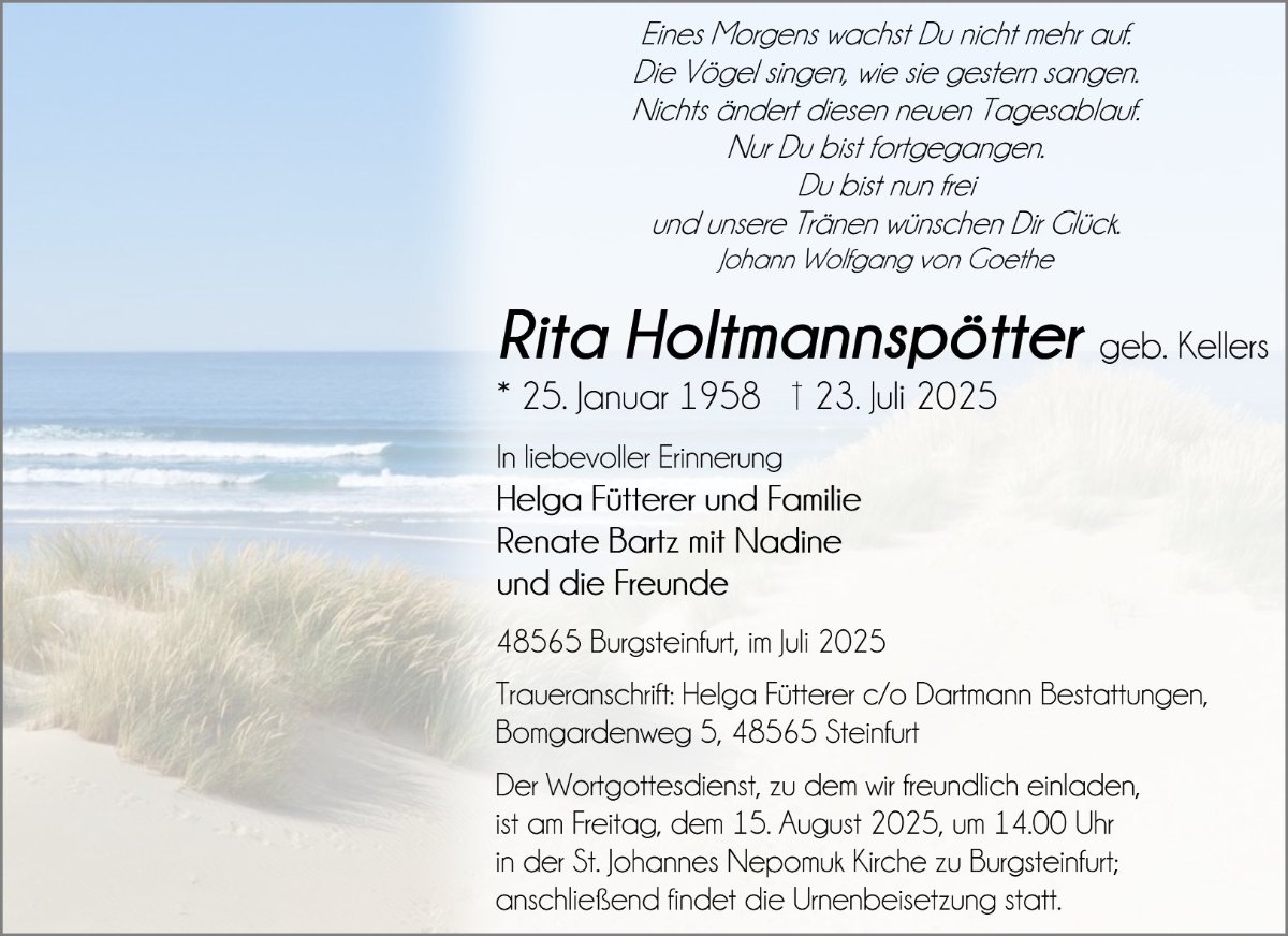 Rita Holtmannspöttergestorben am 23. Juli 2025