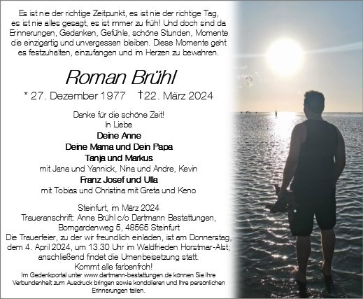 ich empfinde große Betroffenheit über den viel zu frühen Tod von Roman.