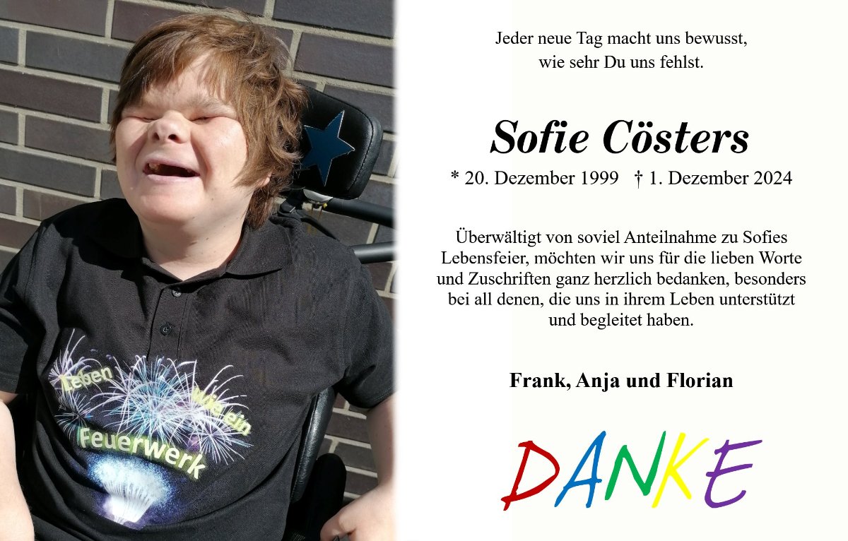 Ich wünsche euch als Familie viel Kraft in dieser Zeit und wenn das Herz zu schwer wird, dann stellt euch in die Sonne und denkt an Sofie.
