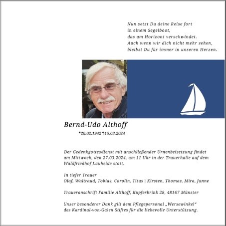 wir wünschen Ihnen von Herzen viel Kraft, dass Sie Menschen um sich haben, die Ihnen in dieser schweren Zeit beistehen und Halt geben. Zusätzlich können Sie auf dieser Gedenkseite Erinnerungen teilen und so das Andenken gemeinsam wachhalten.