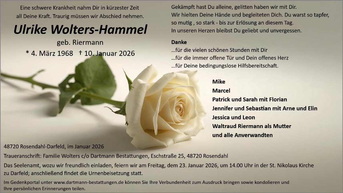 Liebe Angehörige, wir wünschen Ihnen von Herzen viel Kraft, dass Sie Menschen um sich haben, die Ihnen in dieser schweren Zeit beistehen und Halt geben. Zusätzlich können Sie auf dieser Gedenkseite Erinnerungen teilen und so das Andenken gemeinsam wachhalten. In tiefer Verbundenheit