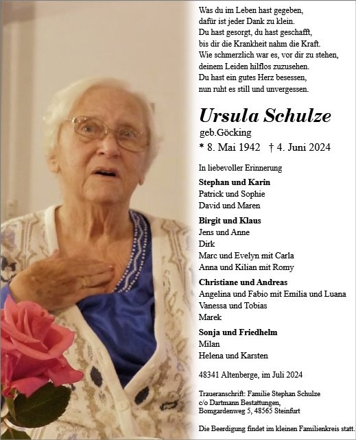 wir wünschen Ihnen von Herzen viel Kraft, dass Sie Menschen um sich haben, die Ihnen in dieser schweren Zeit beistehen und Halt geben. Zusätzlich können Sie auf dieser Gedenkseite Erinnerungen teilen und so das Andenken gemeinsam wachhalten.