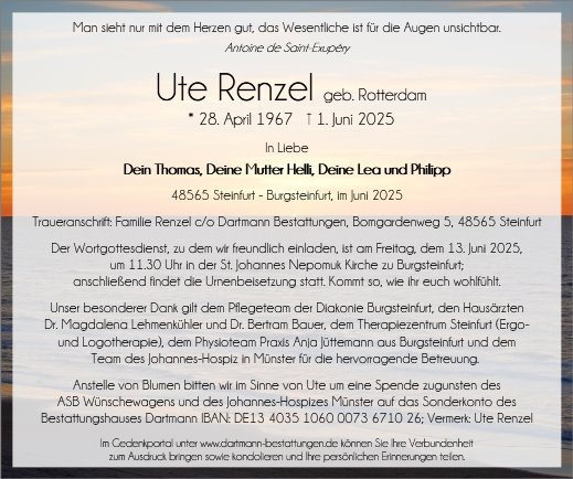 Ich wusste, dass Ute MS hatte, aber dass sie so früh Ihre Lieben verlassen musste, das hätte ich nicht gedacht.