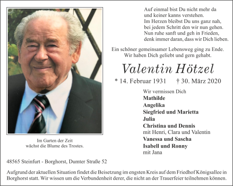 Valentin Hötzelgestorben am 30. März 2020