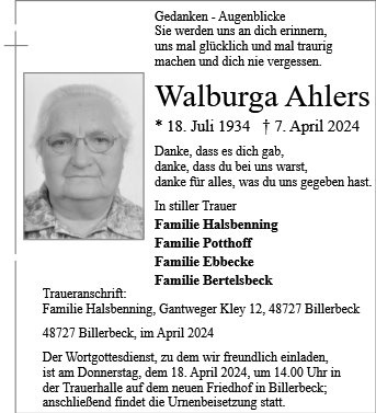 gestorben am 7. April 2024 in Billerbeck