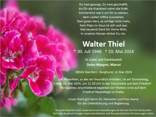 Sprechen Sie im Kondolenzbuch den Hinterbliebenen Ihr Beileid aus und teilen Sie persönliche Gedanken und Erinnerungen mit anderen.