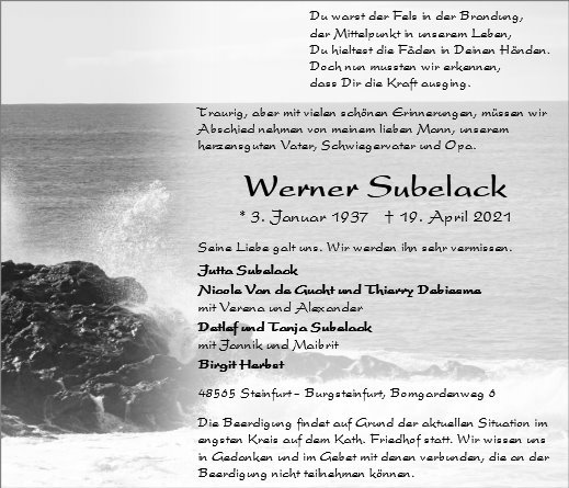 wir wünschen Ihnen von Herzen viel Kraft, dass Sie Menschen um sich haben, die Ihnen in dieser schweren Zeit beistehen und Halt geben. Zusätzlich können Sie auf dieser Gedenkseite Erinnerungen teilen und so das Andenken gemeinsam wachhalten.