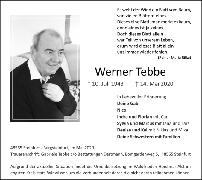 Werner Tebbegestorben am 14. Mai 2020