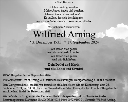 wir wünschen Ihnen von Herzen viel Kraft, dass Sie Menschen um sich haben, die Ihnen in dieser schweren Zeit beistehen und Halt geben. Zusätzlich können Sie auf dieser Gedenkseite Erinnerungen teilen und so das Andenken gemeinsam wachhalten.