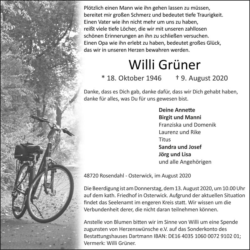 Ich sehe mich mit sehr großer Trauer dem Tode MEINES WILLIS gegenüber!!