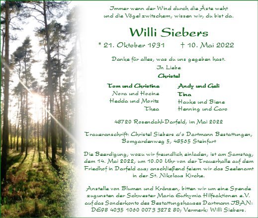 wir wünschen Ihnen von Herzen viel Kraft, dass Sie Menschen um sich haben, die Ihnen in dieser schweren Zeit beistehen und Halt geben. Zusätzlich können Sie auf dieser Gedenkseite Erinnerungen teilen und so das Andenken gemeinsam wachhalten.