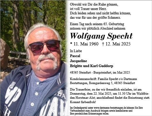 Liebe Familie Specht, wir trauern mit euch