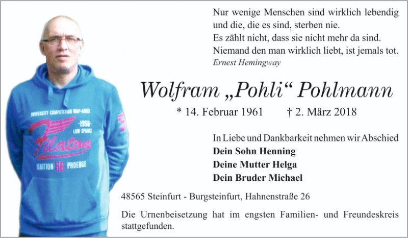 Traurig habe ich von dem Tod erfahren. Auch wenn wir in den letzten Jahren nicht viel Kontakt hatten, weiss ich was für ein toller Mensch Wolfram war. Ich durfte viele schöne Stunden mit ihm verbringen und wüsste er ist ein wahrer Freund.